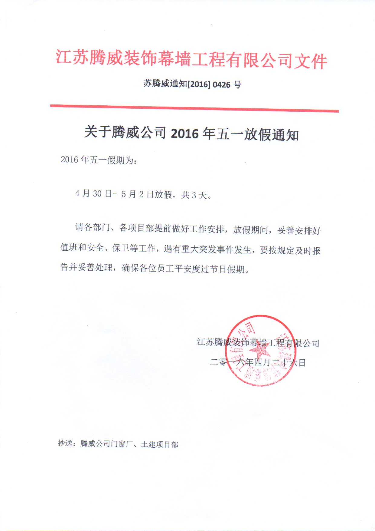 2016年五一放假通知
