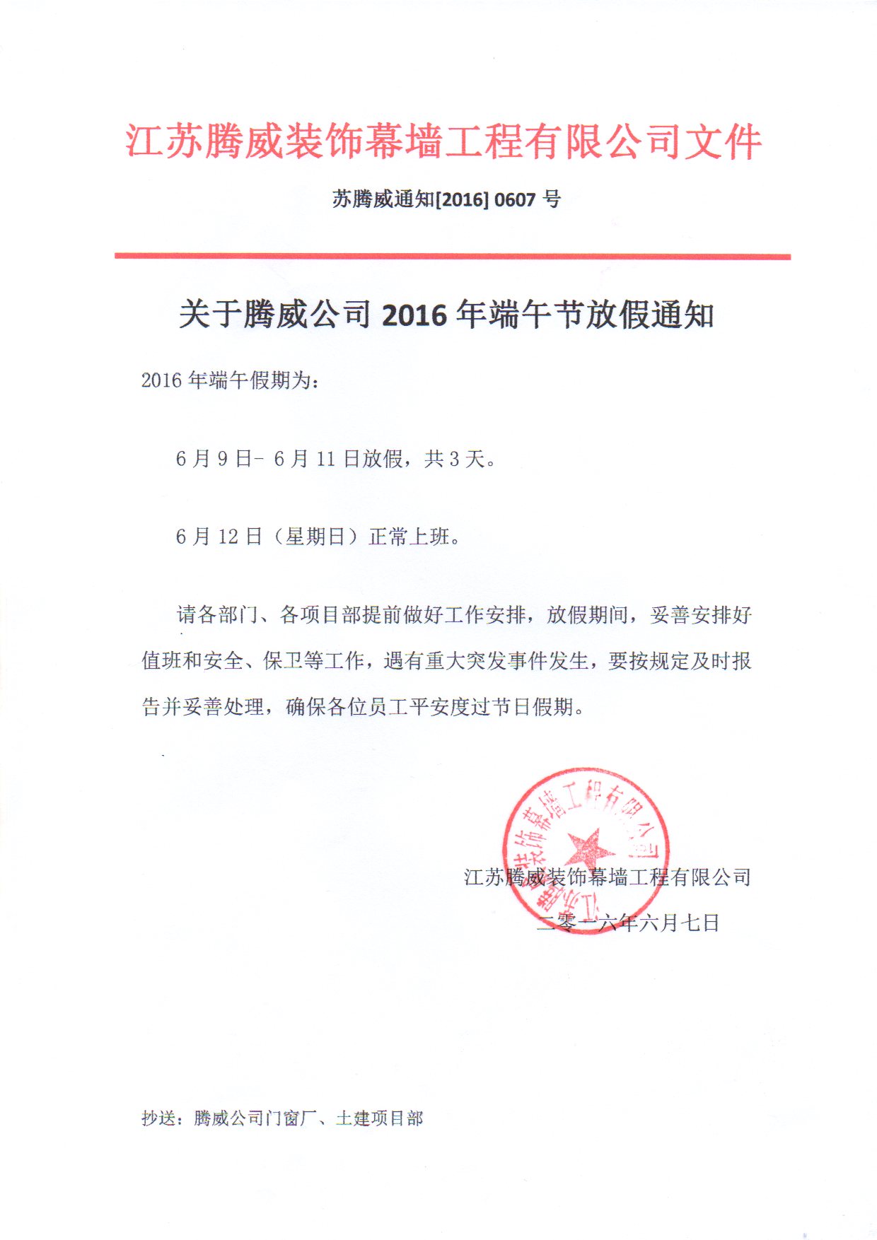 关于2016年端午放假通知