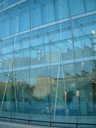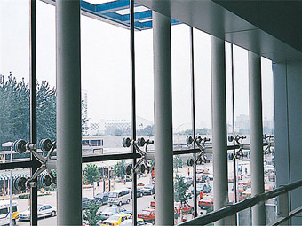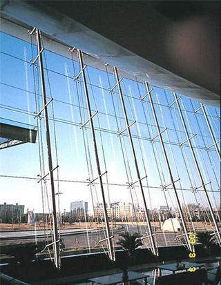 一、点支式幕墙 1.支承结构形式多样,可满足不同建筑师及工程业主对建筑结构与外立面效果的需求。 2.结构稳固美观,构件精巧实用,可实现金属结构与玻璃的通透性能融为一体,建筑内外空间和谐统一。 3.玻璃与驳接爪件采用球铰连接,具有较强的吸收变形能力。